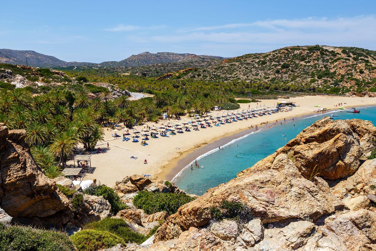 Vai beach: Kréta északkeleti partján található Vai tengerpart Európa legnagyobb természetes pálmaerdőjével büszkélkedhet. Aranyhomokja és azúrkék vize igazi trópusi hangulatot áraszt, tökéletes napozásra és úszásra. A jól kiépített strand napágyakkal, napernyőkkel és hangulatos tavernákkal várja a látogatókat. A környéken túraútvonalak is vezetnek, ahonnan lenyűgöző panoráma tárul elénk.